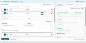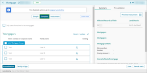 For example, if the name has been edited using Change due to pending dealing it will revert to what is recorded on the Register. Or, if a prior instrument has been added to your dealing which changes the mortgagor, using Revert/update will pull through the updated names.