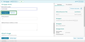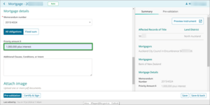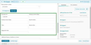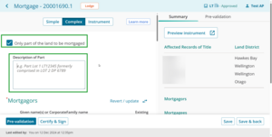 Select the Only part of the land to be mortgaged checkbox if the mortgage is only for part of the land.