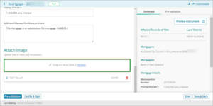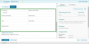 - Select the Mortgage hyperlink when the instrument details are collapsed.