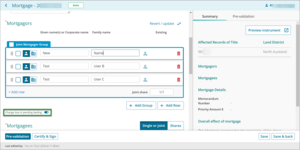 Review the Mortgagors section in the Summary tab to check your selections are correct.