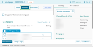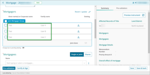 Select the Revert/update button above the Mortgagor section to re-set the mortgagor names to reflect the Register and any prior instruments in the dealing.