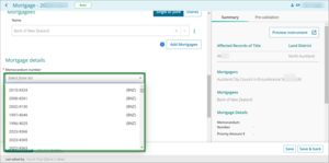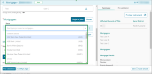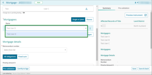 After entering the name of the mortgagee, select it from the drop-down menu to confirm your entry.