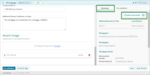 Select Preview instrument to view, print or download the full instrument preview, including any added text, attachments or certifications and signatures.