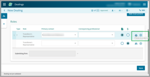 To quickly populate your default primary contact and conveyancing professional roles select the people icon next to each role.