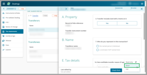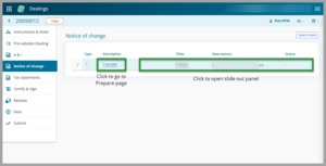 To stay on the page you're on, click anywhere on the row to open a panel. The panel shows for Dealing details, Notice of Change of Ownership or tax statements.