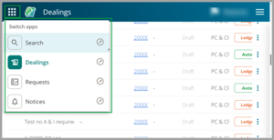 Use the app switcher to open multiple Landonline applications at once, such as Dealings and Web Search.
