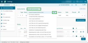 You can now add a templated set of instruments to a dealing for specific transactions. For example, when completing a subdivision or complex boundary adjustment.