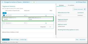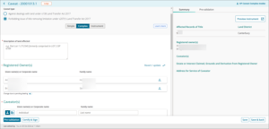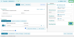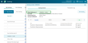 - Once the new title has been issued, prepare a standard transfer of that title in a dealing using either Simple or Complex mode to complete the transfer.