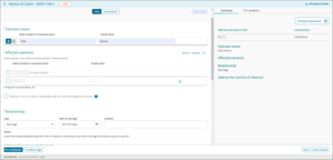 When ticking the checkbox next to a corporate name in the Affected owner(s) section, a Claimant is not in a direct relationship with the registered owner(s) checkbox will automatically tick.