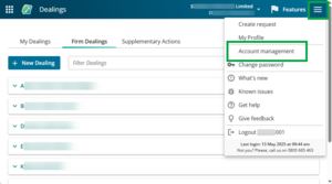 To access this function, open the main menu at the top right of your landing page and select Account Management.