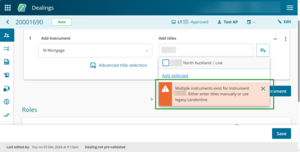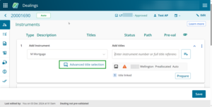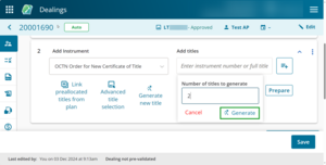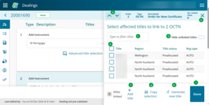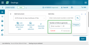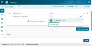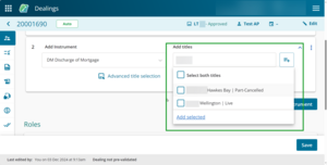 To quickly add existing titles from the previous instrument in the dealing, select Add all available titles above the Add titles field.
