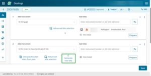 You can generate new titles in this panel for instruments that are capable of resulting in the issue of a new title.