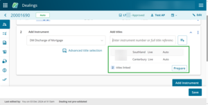If you change the affected titles for an instrument after it has been prepared, all details for that instrument will be deleted and any certifications and signatures will be removed.
