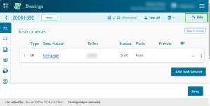 If the dealing is already created, select Edit at the top right of the page to open the Edit reference info box.