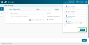 If you've just created a new dealing, the Edit reference info box will already be open.
