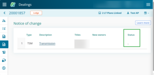 - Select Notice of Change from the lefthand menu on the Instrument & Roles page of your dealing.