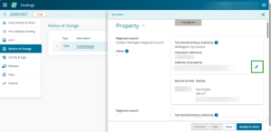 Select the pencil icon next to the Address of property field to edit the address in the Property section.