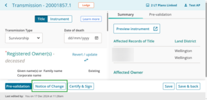 Or, select Notice of Change at the bottom of the Prepare instrument page.