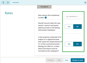 Enter the instalment number and rating year that the new owner will be responsible for in the New owners first instalment number field.