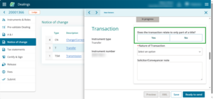 If the transaction relates to part of a title, we recommend you use the Solicitor/Conveyancer note field to provide more detail.