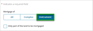 Select Instrument mode to mortgage a mortgage, encumbrance or other interest including lease or easement instrument.