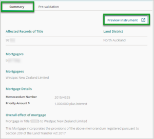 - Select the Mortgage hyper link when the instrument details are collapsed.