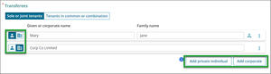 Enter the transferee names into the name fields provided. It defaults to individual. Toggle using the individual or corporate icons to change the field between individual and corporate.