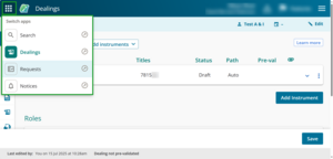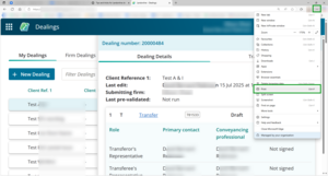Use the app switcher to open multiple Landonline applications at once, such as Dealings and Web Search.