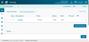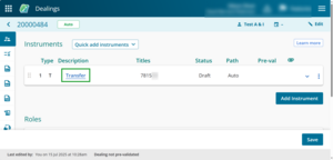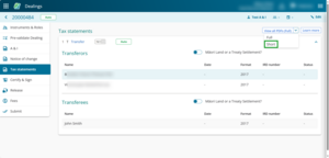 To stay on the page you're on, click anywhere on the row to open a panel. The panel shows for Dealing details, Notice of Change of Ownership or tax statements.