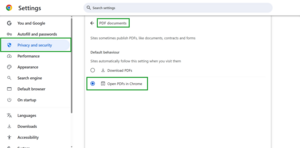 - Once adjusted, refresh the browser and try to open the PDF in your browser again.