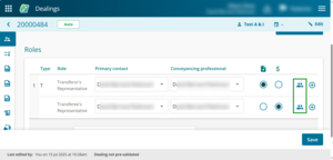 To quickly populate your default primary contact and conveyancing professional roles select the people icon next to each role.