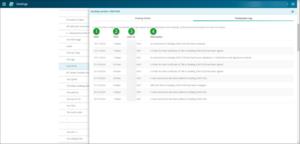The transaction log displays a record of key changes made to a dealing and its instruments during the preparation of the dealing.