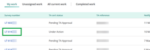 If your TA receives an application for Certification without the corresponding Landonline TA Certification Request, the Work item for the Survey won’t show in All current work.