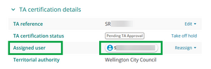 The TA reference is entered by surveyor when they create a TA certification request, but you can edit this as needed.