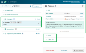You can now add a TA reference, create packages and certificates, and add supporting documents as needed.