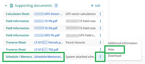 The LandXML, Record of Survey, and Title Plan you access from the work item screen will often be the same versions as those attached to the notification message you received from the Surveyor.
