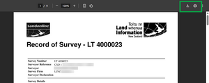 A PDF of the selected survey plan opens in a new browser tab. To download or print the file, select the Download or Print icons on the top right-hand side of the screen.