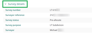 - Surveyor reference – if required, this can be edited by the surveyor from the Landonline Survey application.