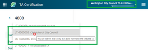 - The same survey can appear multiple times if it relates to multiple TAs. However you can only select items for your TA.