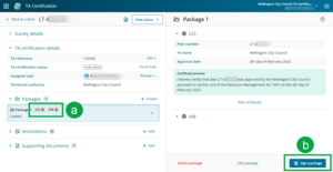 - Ensure all certificates in the package you want to sign are completed (a). If you have more than one package, you need to sign each package separately.