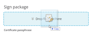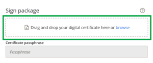 a. an area to drag and drop (or select by browsing the computer) a digital certificate