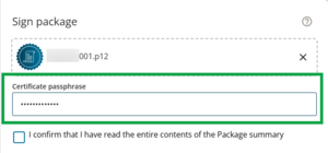Select Sign package at the bottom right (b). In this example Package 1 is to be signed.