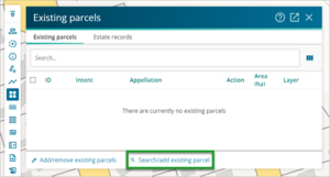 - Open the Existing parcel panel and select Search/add existing parcel.