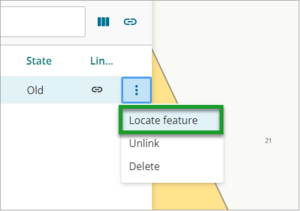 - Select the three dot icon at the end of the row and select Locate feature.
