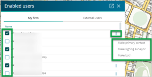 - Landonline auto-populates the registered users in your firm, and you can select and deselect these as required from the Enable users panel.
