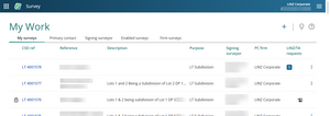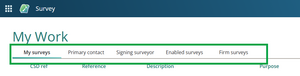 - My surveys lists all surveys that you are enabled to. This includes surveys where you are assigned as the primary contact and/or signing surveyor, and any surveys where you have been added as an enabled user.