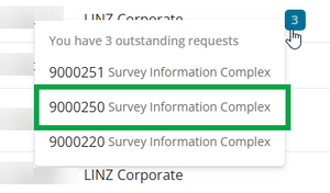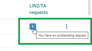 Incomplete LINZ requests are indicated by a blue square icon showing the number of outstanding requests.