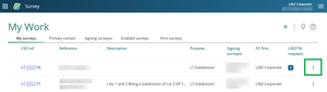Surveys created in both this application and Legacy Landonline will be listed on the My work page.