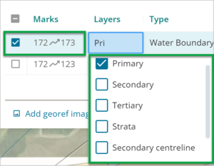 image highlighting the Layers field for an irregular line. The drop-down menu is open, and the primary and tertiary layers are selected.