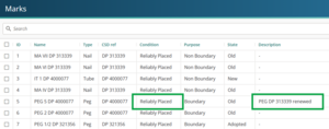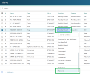 Note that the mark Condition will have reverted to Reliably Placed. The Description field will reflect the Renewed mark status.